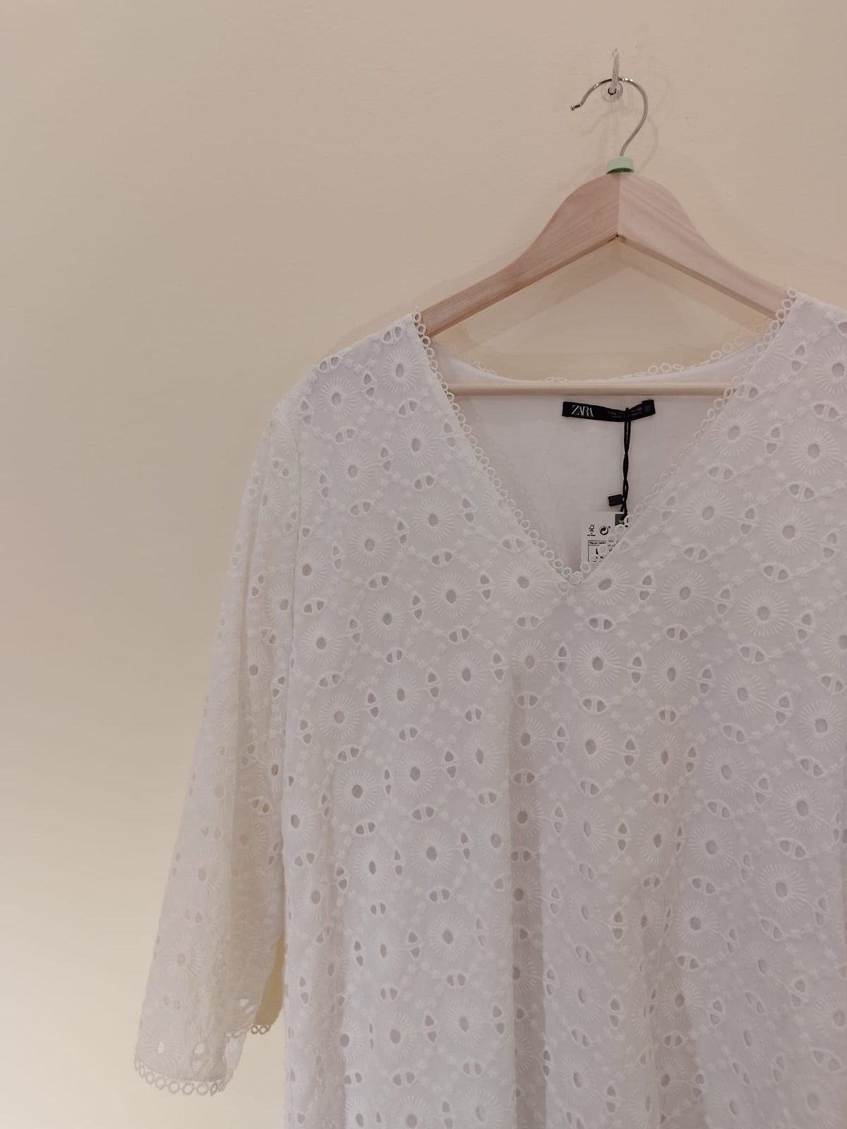 NEU - ZARA Mini Swing Kleid mit V-Front und Lochstickerei